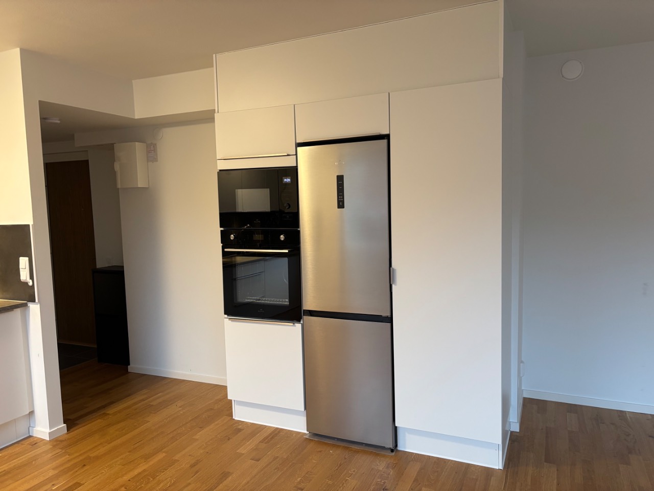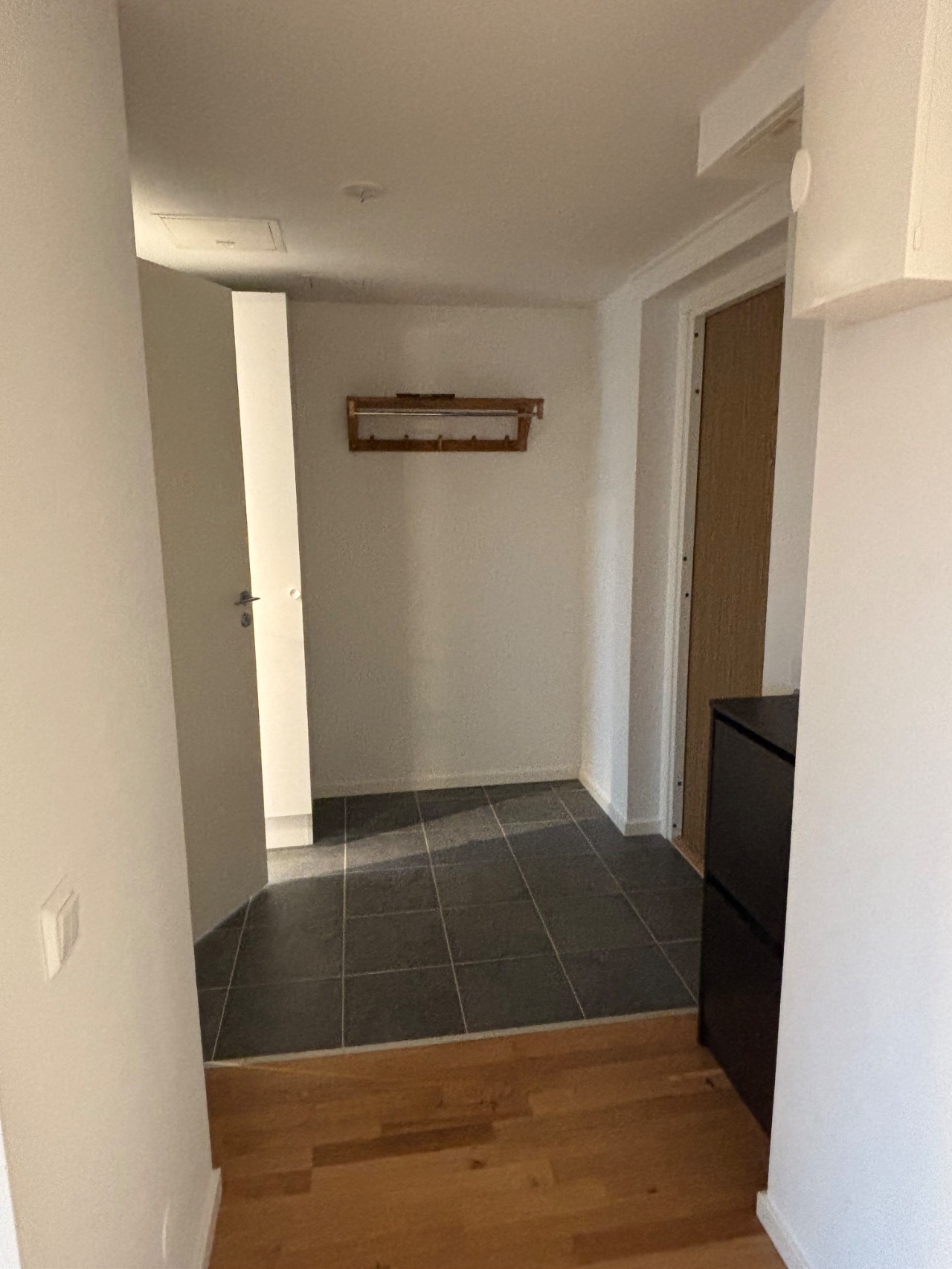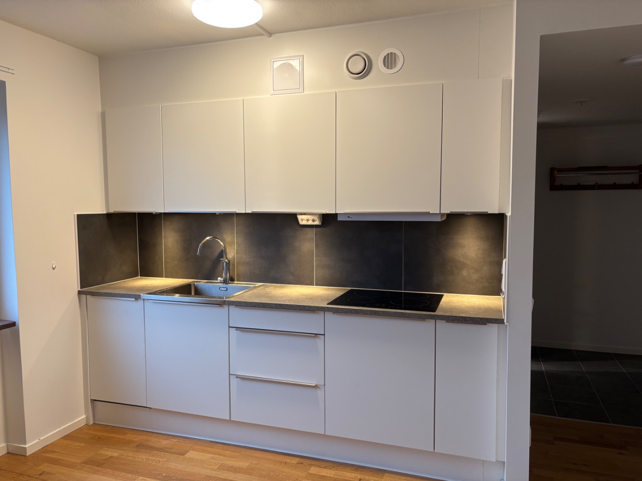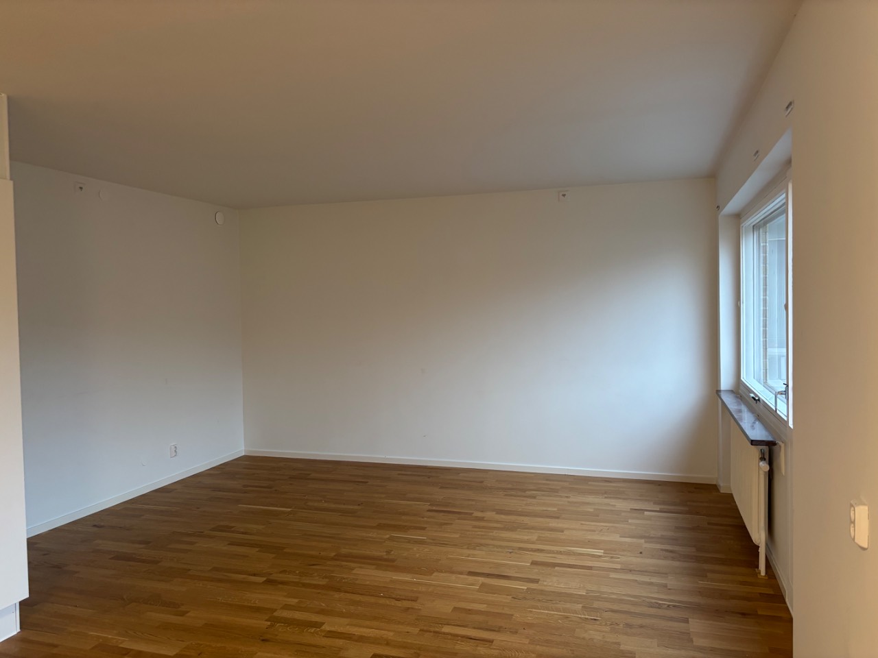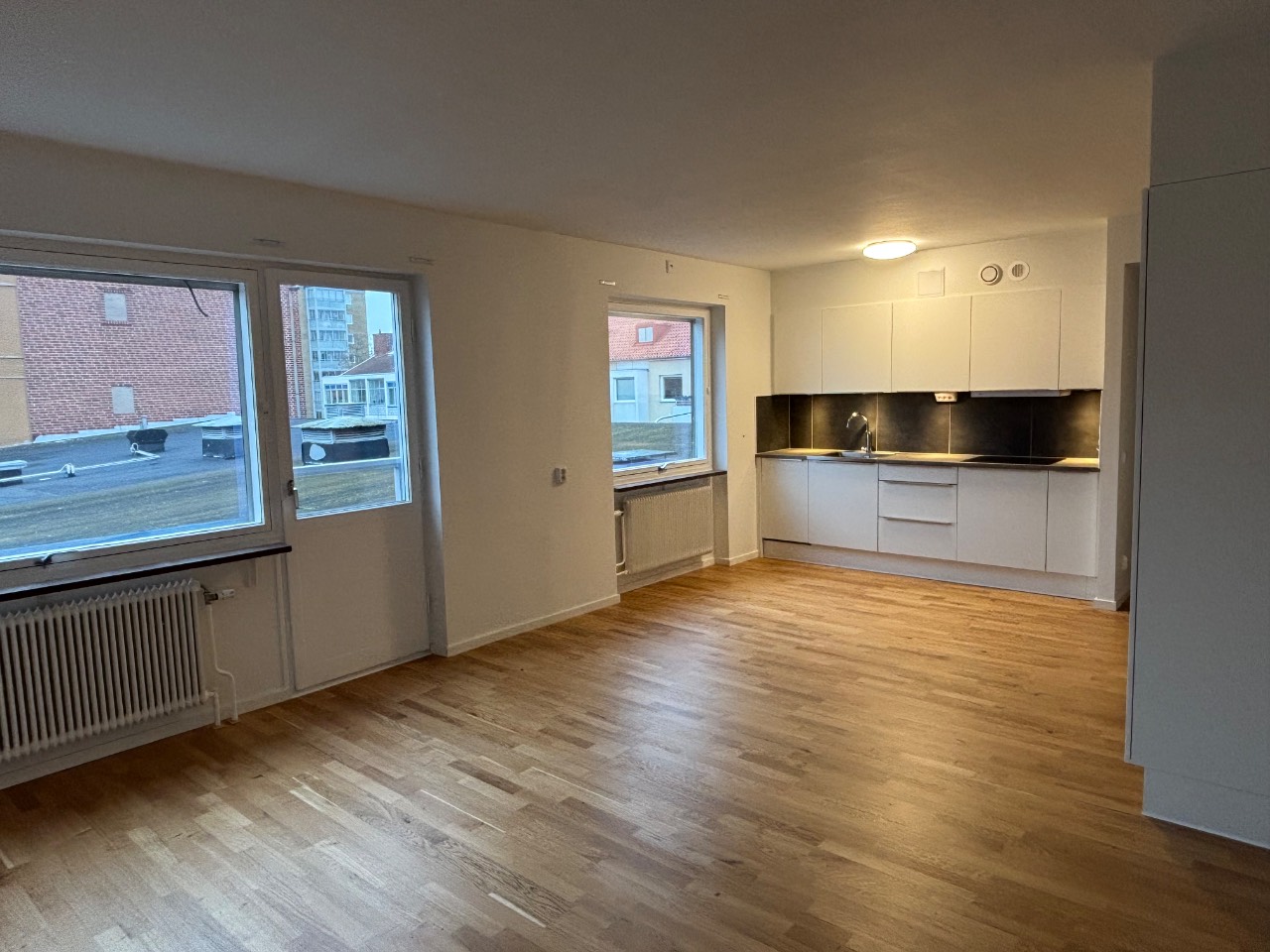 Lägenheten är nyligen totalrenoverad. Hela lägenheten har ljusa vita väggar och parkettgolv.