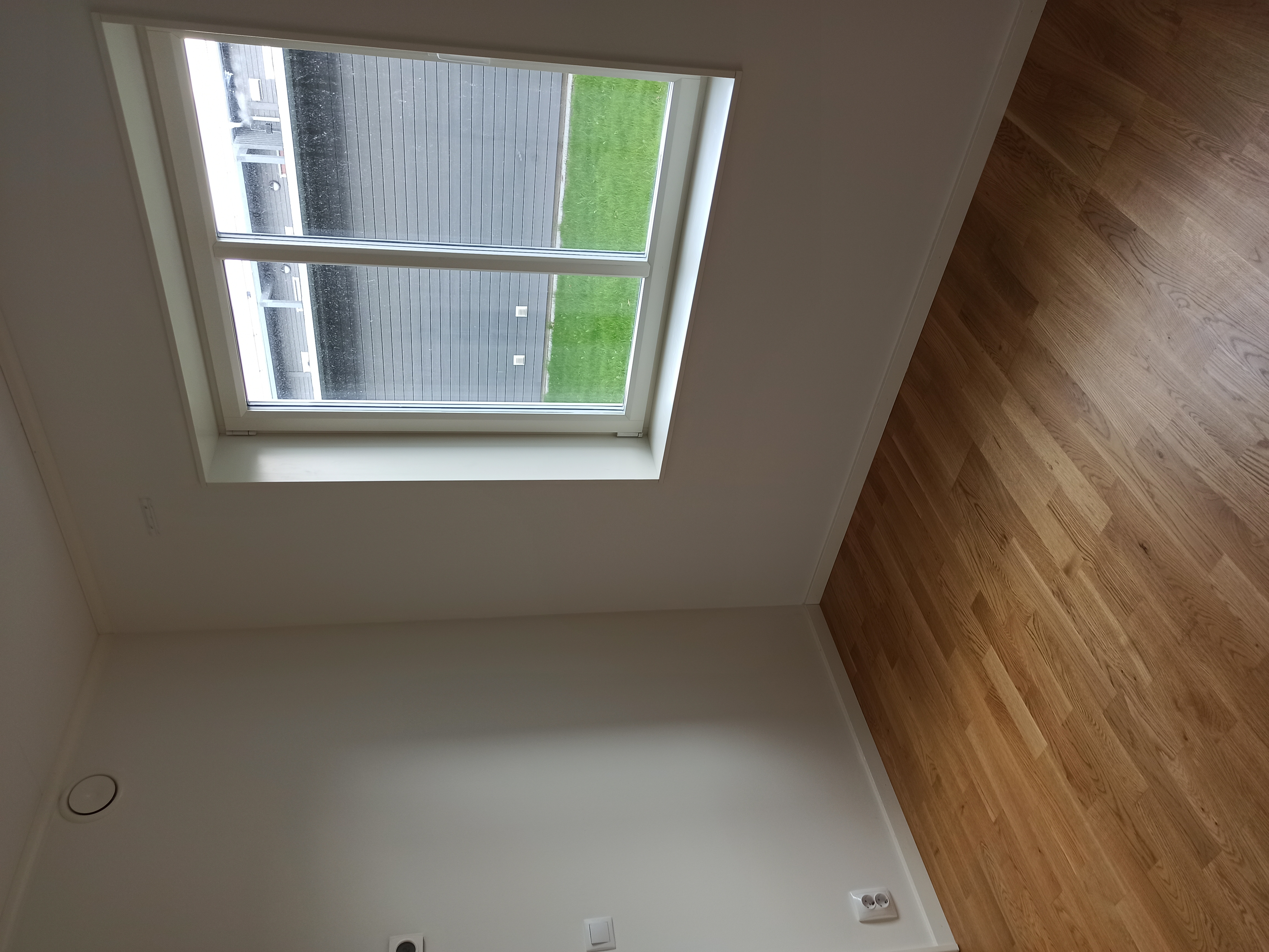 Ytsmart ljus trerumslägenhet med stora fönster i vardagsrummet, bra förvaringsmöjligheter och förråd i lägenheten samt balkong. 3-stavs ekparkettgolv och vita väggar. Köket har vita luckor, mörk bänkskiva och rostfria vitvaror: kyl/frys, spishäll, ugn, mikrovågsugn och diskmaskin. I köket finns det även matplats. Badrummet är helkaklat med inglasad dusch och tvättmaskin samt torktumlare. Hyran inkluderar värme, vatten samt grundutbud för TV.