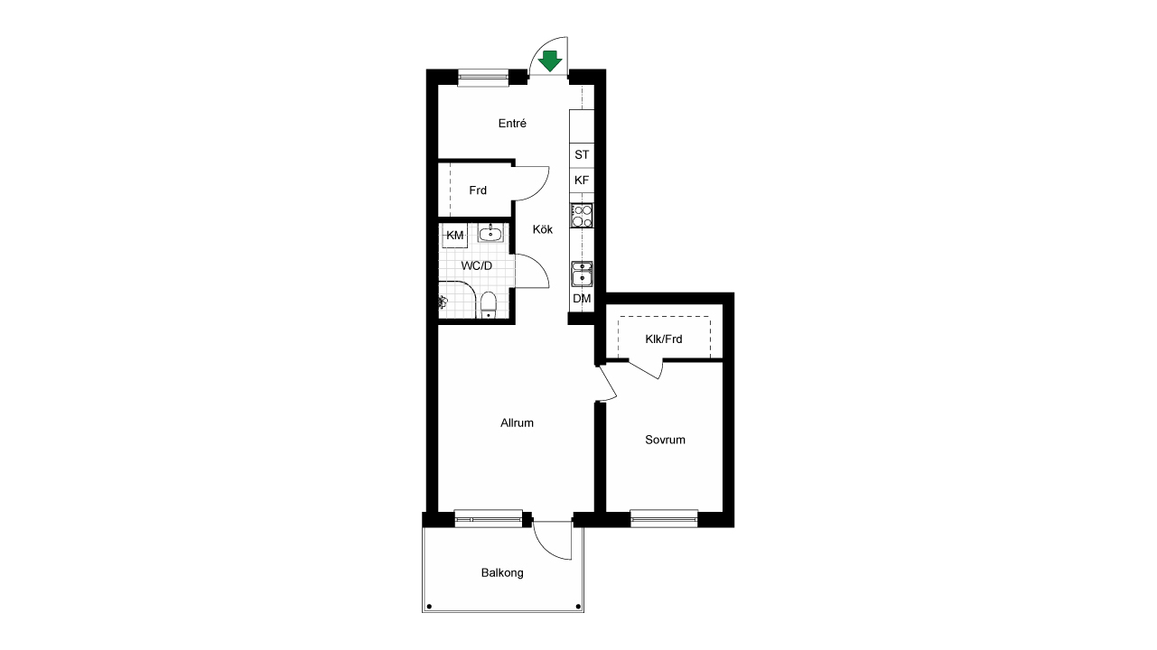 Badrummet är smakfullt inrett med klinker och kakel och är utrustat med kombinerad tvättmaskin och torktumlare för extra bekvämlighet. Lägenheten har dessutom ett praktiskt inbyggt förråd samt en balkong i sydostläge, där du kan njuta av morgonsol och en kopp kaffe.