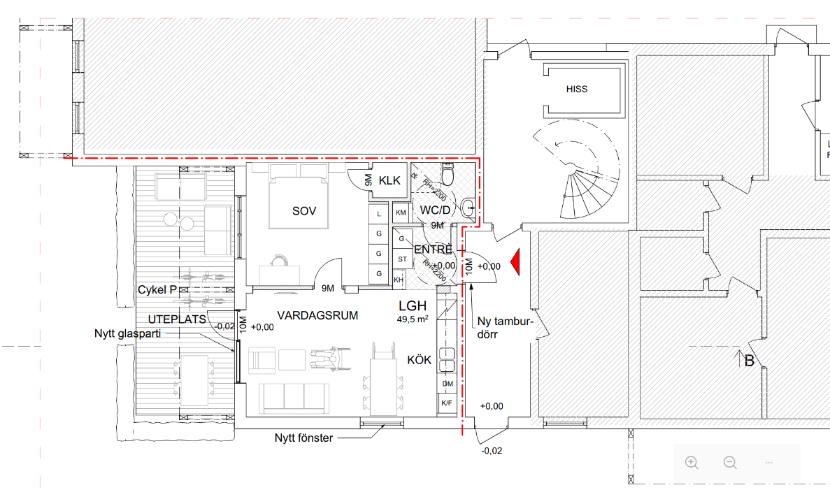 Denna ljusa och moderna lägenhet byggs som en nyproduktion i en befintlig fastighet, vilket innebär moderna standarder och smarta lösningar med ny känsla. Lägenheten har en öppen planlösning som skapar ett luftigt och socialt utrymme mellan kök och vardagsrum – perfekt för både matlagning och umgänge. Köket är stilrent med vita skåpluckor, mörk bänkskiva och rostfria vitvaror, inklusive kyl/frys, spishäll och diskmaskin. Badrummet är helkaklat och utrustat med duschdörrar samt en praktisk kombinerad tvätt- och torkmaskin. Sovrummen är rymliga med goda förvaringsmöjligheter, och stora fönster släpper in rikligt med ljus, vilket ger lägenheten en trivsam och välkomnande känsla.