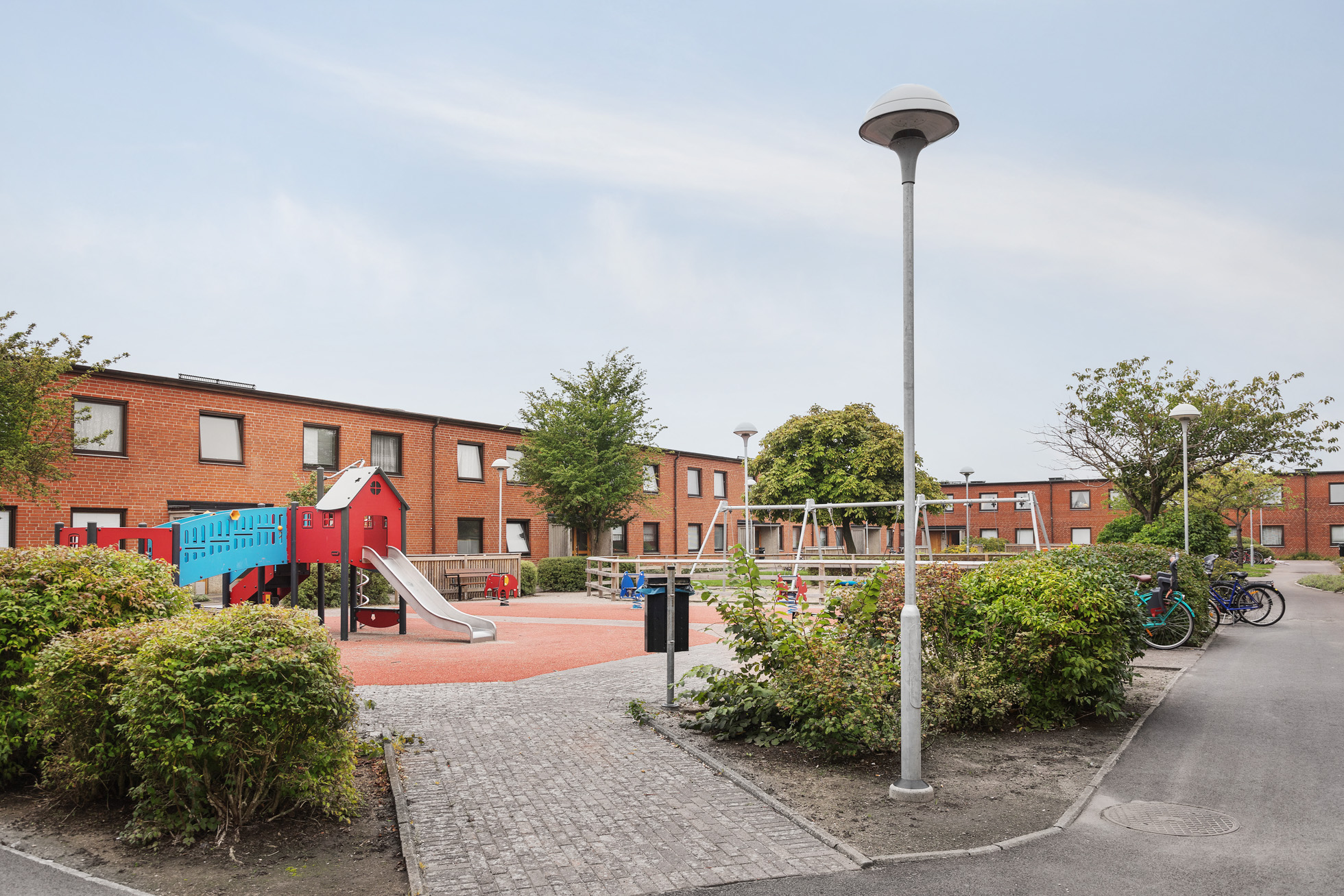 På varje innegård finns en lekplats samt bänkar. Området har mycket grönska och erbjuder även utegym samt basketplan.