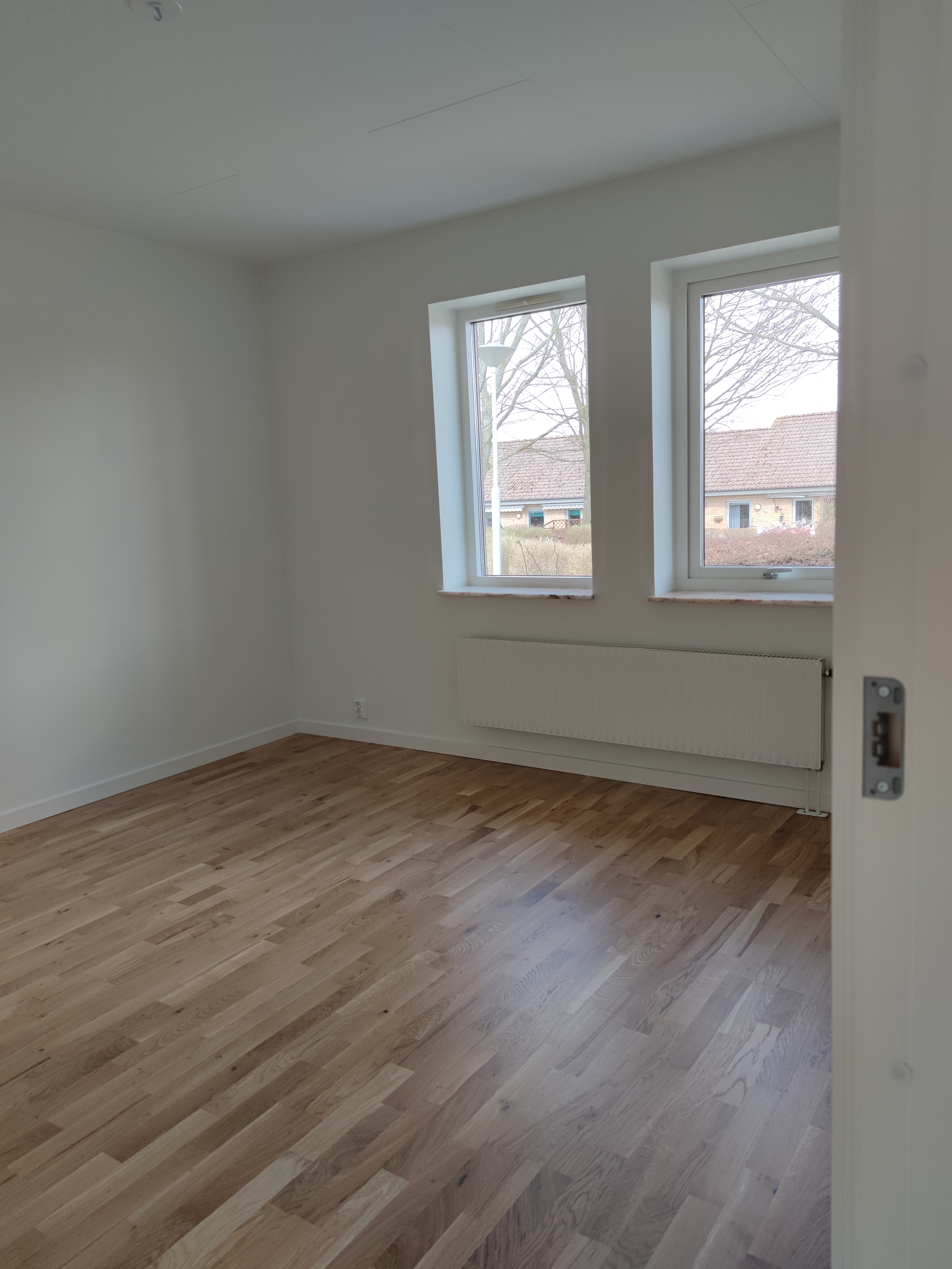 Lägenheten renoverades oktober 2022 och har genomgående vita väggar och parketgolv.
