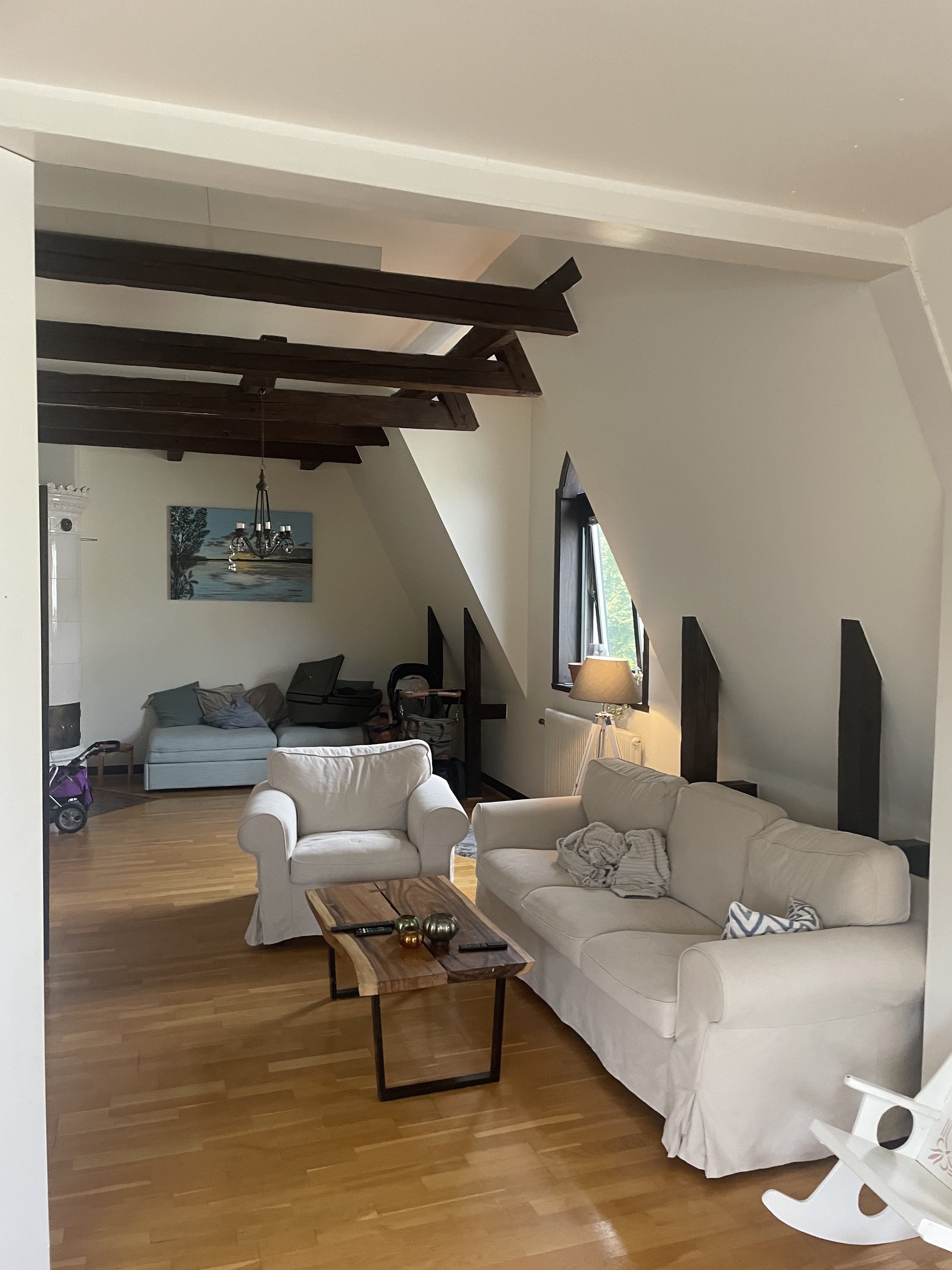 Om lägenheten Lägenheten bjuder på en unik och charmig atmosfär med sina imponerande takbalkar och den vackra, äldre kakelugnen i vardagsrummet (ej i bruk), som ger rummet en tidlös karaktär. De generösa rumsytorna skapar en härlig känsla av rymd, och de stora fönstren släpper in ett fantastiskt naturligt ljus som förstärker bostadens varma och välkomnande känsla. Här finns bekvämligheter så som diskmaskin, tvättmaskin och torktumlare.