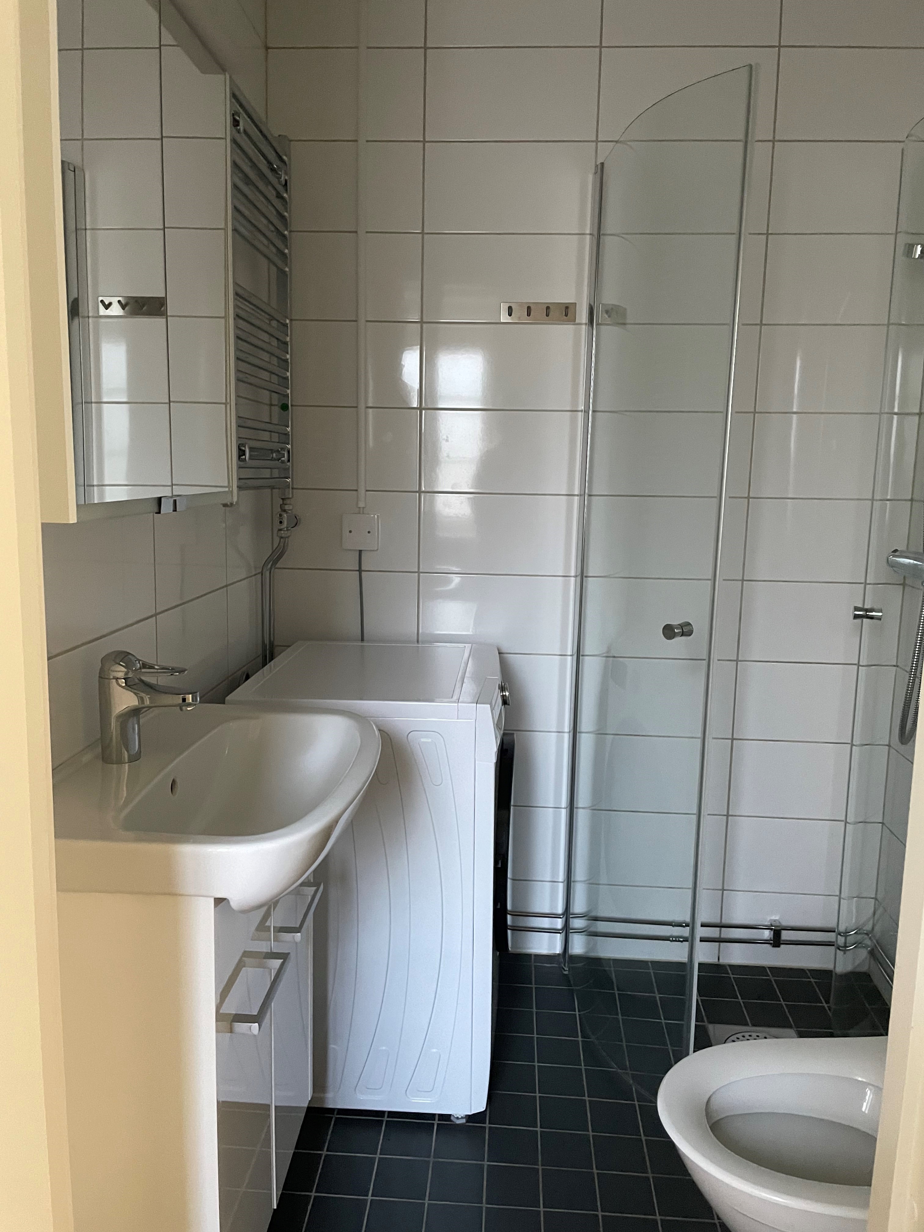 Ljus och stilren lägenhet som har ett nytt fint kök med vita luckor, utrustad med hällspis, varmluftsugn och inbyggd mikrovågsugn, fullstor kyl och frys, diskmaskin. Helkaklat badrum med handukstork och golvvärme, tvättmaskin. Alla rum har parkettgolv, samt vita målade väggar. Säkerhetsdörr
